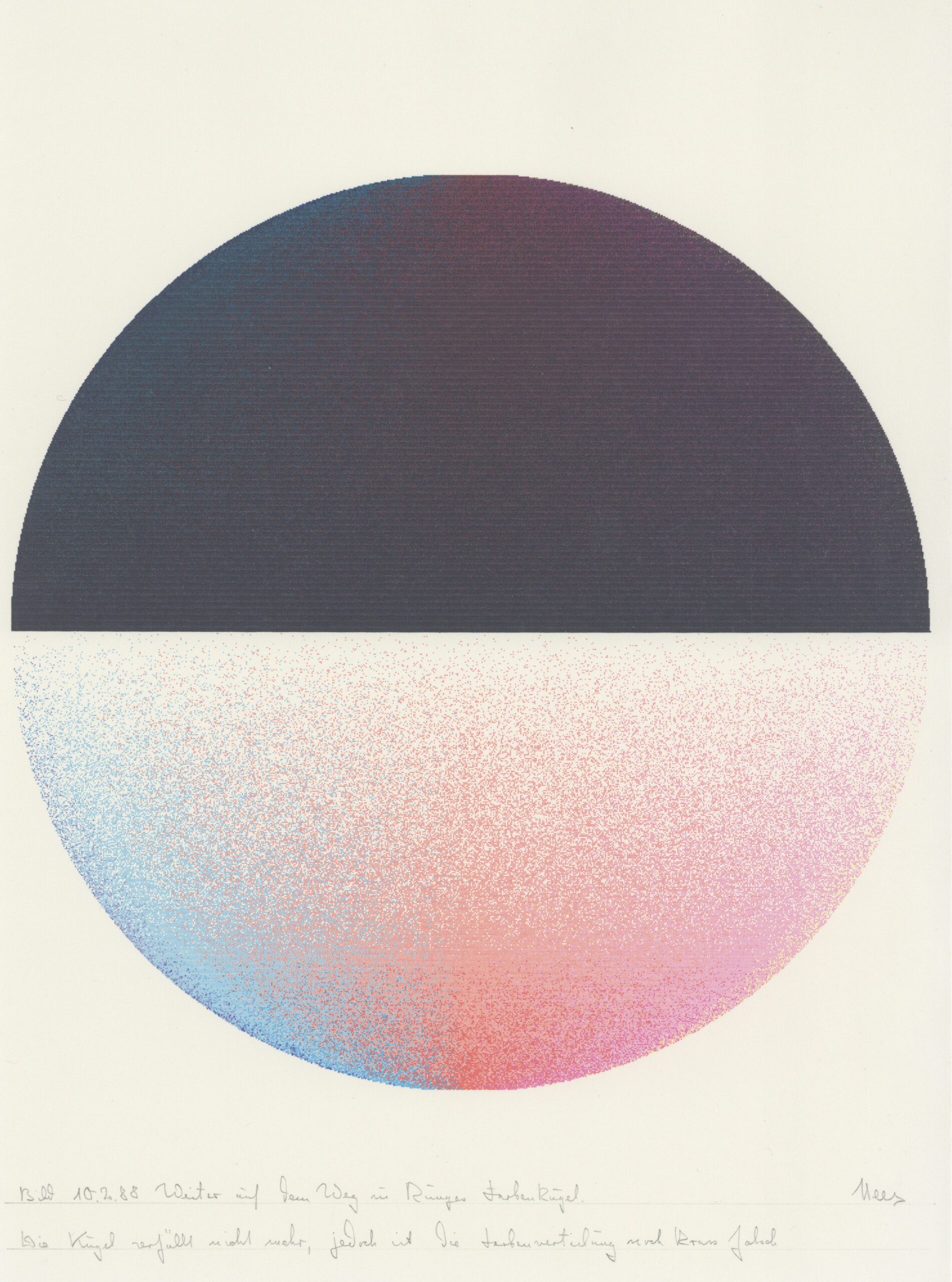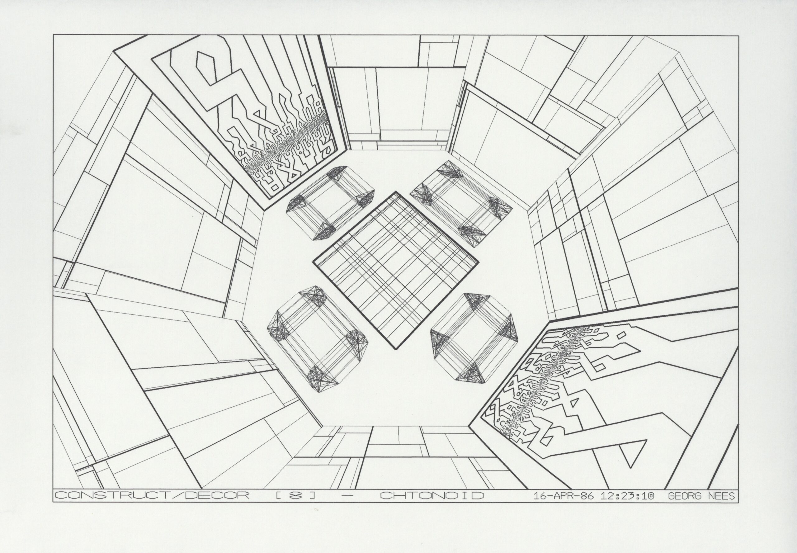This series of computer graphics was created in 1986 at the request of Alex Kempkens for the exhibition Bilder Images Digital (Galerie der Künstler, Munich, 1986).