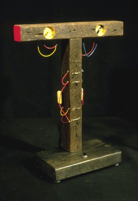 Wood, paint, gold leaf, electronic elements